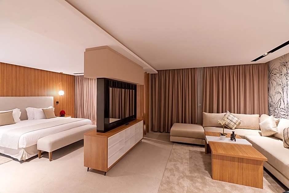 Boasting a private entrance, this air-conditioned suite includes 1 living room, 1 separate bedroom and 1 bathroom with a shower and a bidet. The spacious suite offers soundproof walls, a mini-bar, a coffee machine, a flat-screen TV with satellite channels, as well as garden views. The unit has 4 beds.